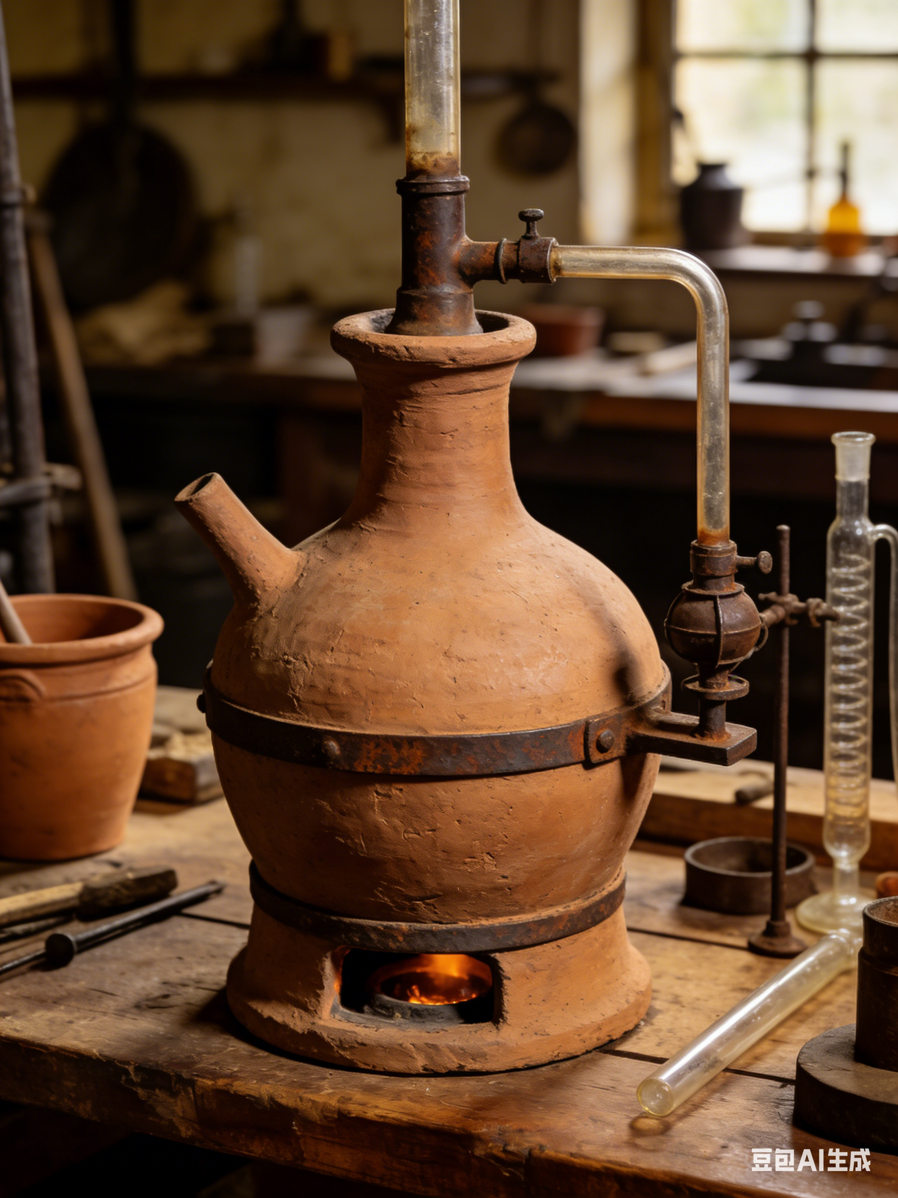 該工藝的核心反應容器是一種特制的陶土甑。它由優質陶土摻入粉狀焦炭制成,形狀如罐或圓柱體,底部有凸起,兩側有耳或把手以便操作。圓柱形甑的頂部開有兩個孔:一個用于插入玻璃連接管,另一個用于添加原料。